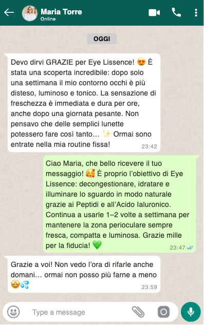 Se cerchi un trattamento contorno occhi sicuro, trasparente e conforme agli standard cosmetici europei, scegli solo Eye Lissence originale e usalo regolarmente per ottenere il massimo beneficio.